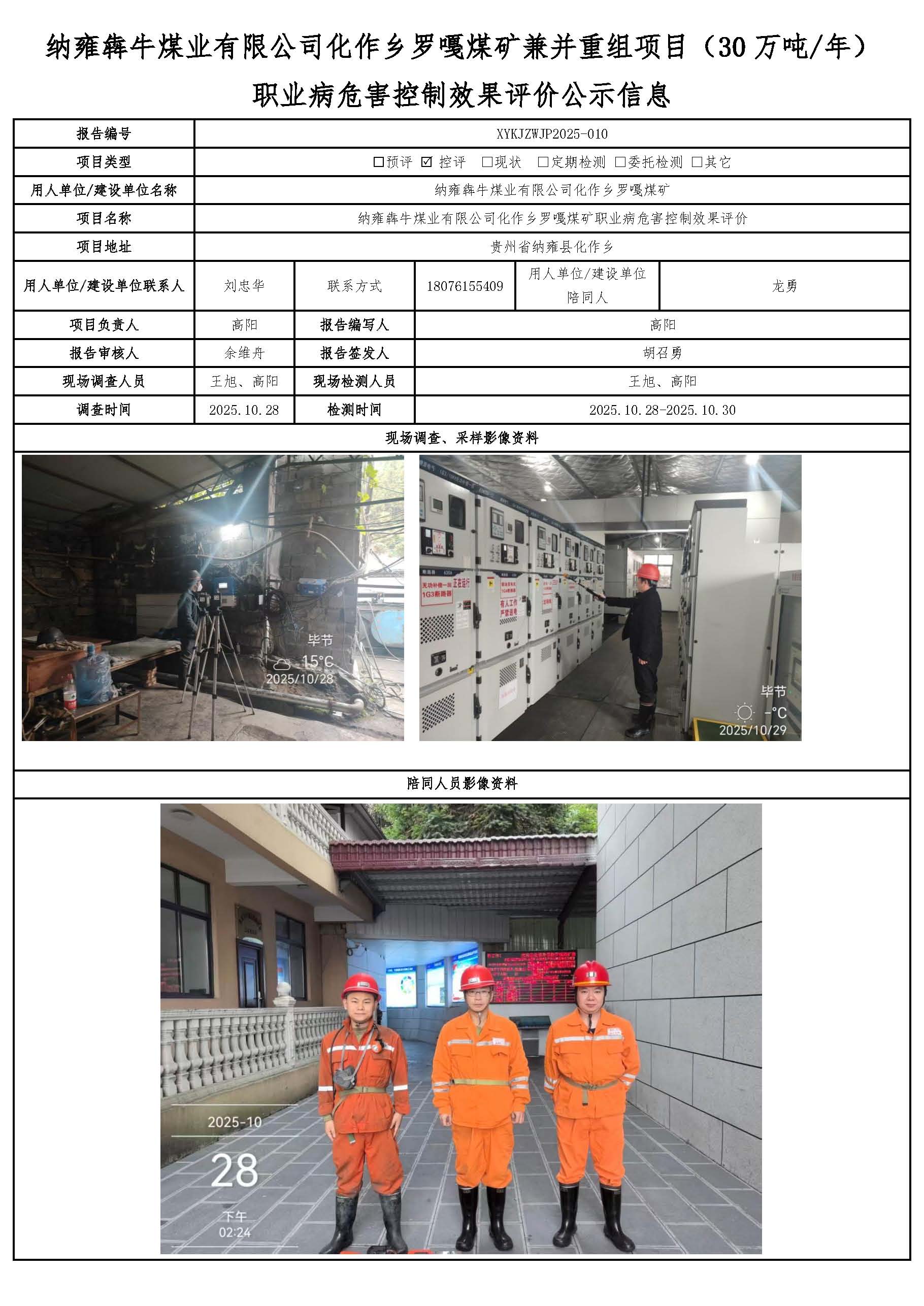 纳雍犇牛煤业有限公司化作乡罗嘎煤矿兼并重组项目(30万吨/年)职业病危害控制效果评价公示信息